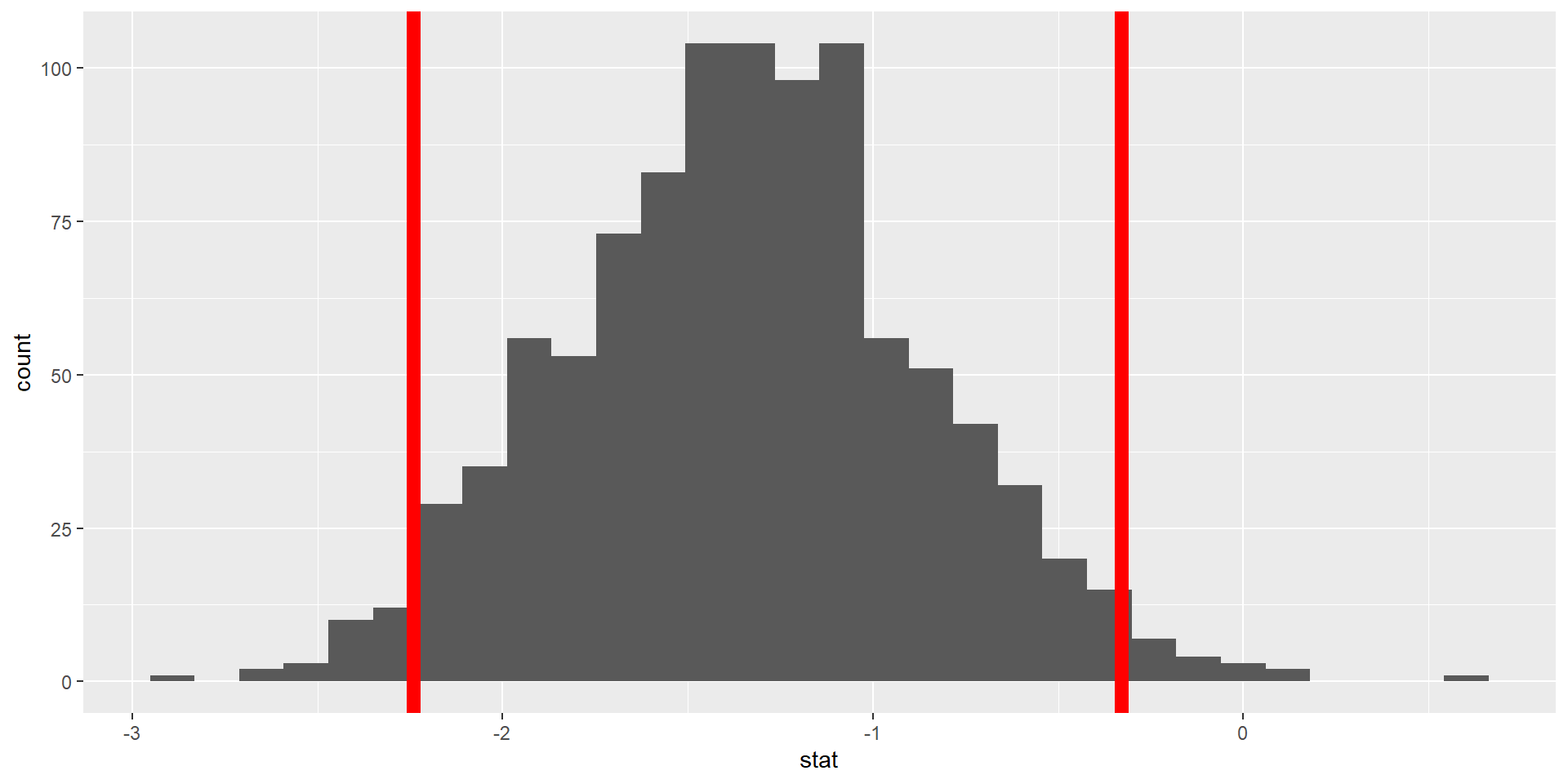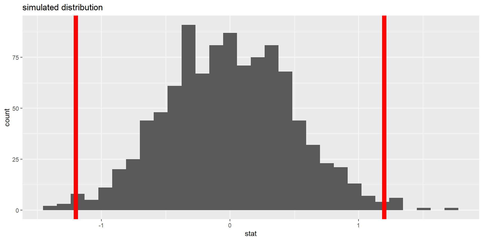 – p-value (probability of observing our stat, or something more extreme, given the null is true)