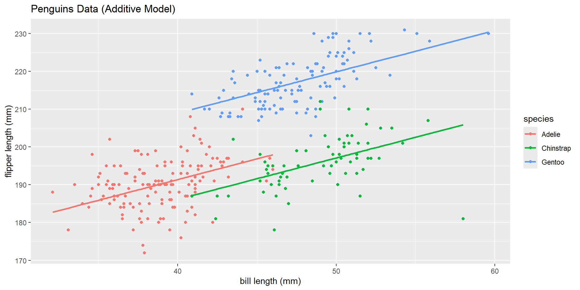 If we are justified to fit an additive model with flipper length, bill length, and species… we should!