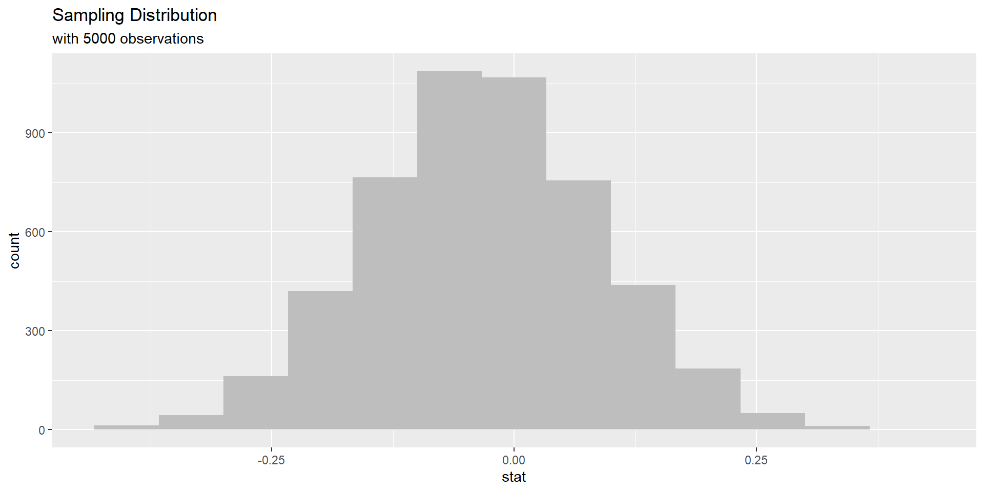 In as much detail as possible, describe how one dot (observation) on this simulated sampling distribution under the assumption of the null hypothesis is created.