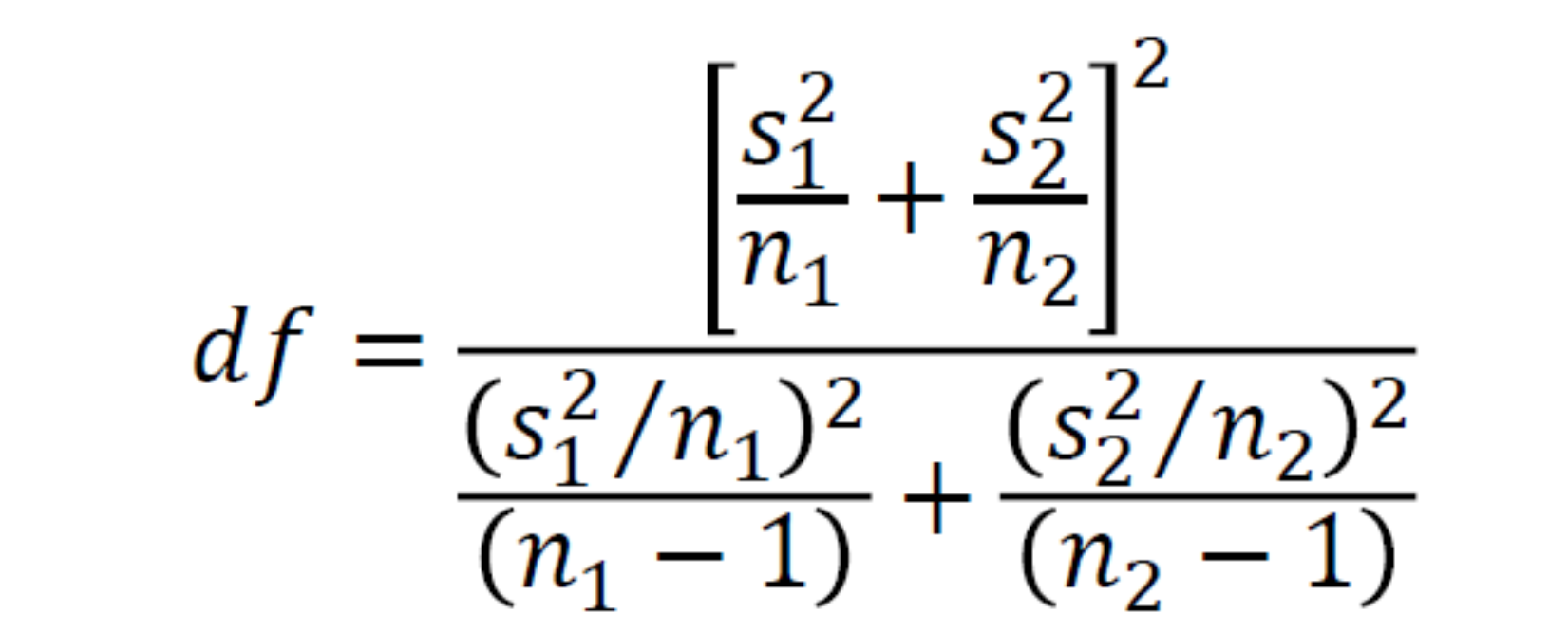 \[ t = \frac{\bar{x_1} - \bar{x_2} - 0}{\sqrt{\frac{s_1^2}{n1} + \frac{s_2^2}{n2}}} \]