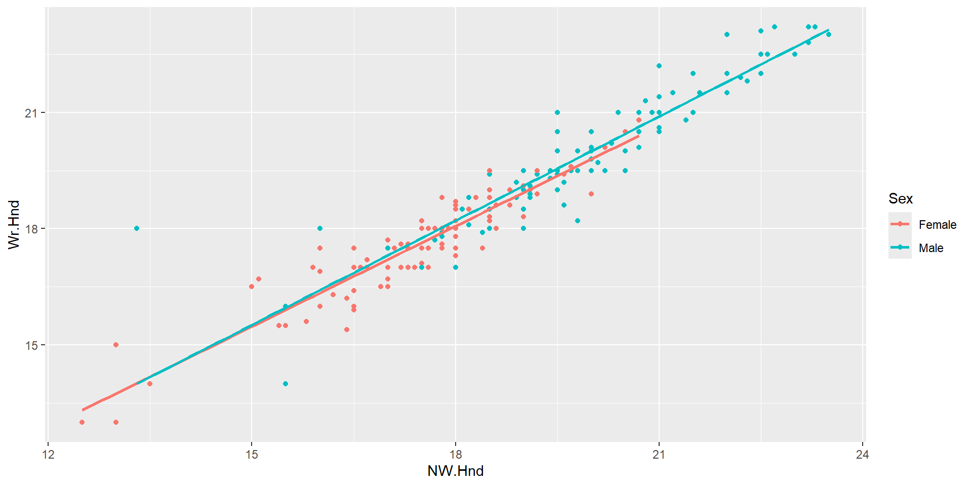 \(\widehat{Wr.Hnd} = 2.175 + .883*NW.Hnd + .151*Male\)