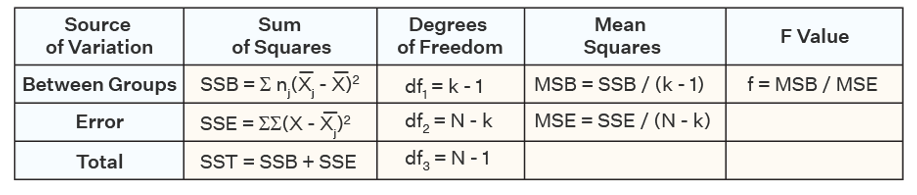 Sums of squares (error) - how spread out observations are from their group mean (within group variation)
